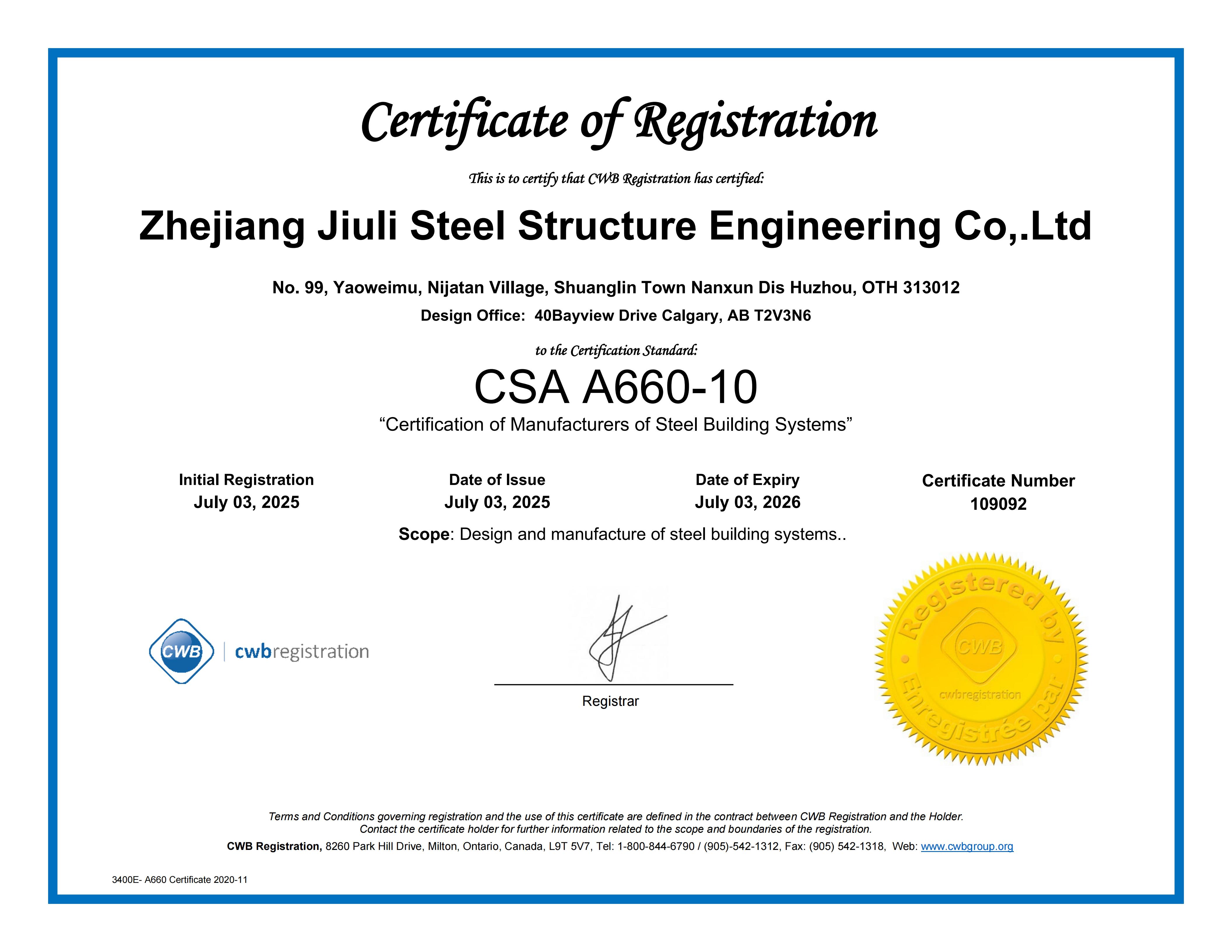 公司建有完善的質(zhì)保體系,通過了IS09001:2015 質(zhì)保體系的認證。擁有建設(shè)部頒發(fā)的建筑工程施工總承包貳級、鋼結(jié)構(gòu)專業(yè)承包壹級資質(zhì)、制造特級資質(zhì)。專業(yè)承接各類工業(yè)與民用工程的建設(shè),鋼結(jié)構(gòu)的設(shè)計、制造和安裝。公司立足國內(nèi)市場,目前已在全國建立多個營銷辦事處,逐步形成了輻射全國的營銷網(wǎng)絡(luò),并積極參與國際競爭,公司擁有加拿大焊接協(xié)會資格論證的加拿大 CWB 證書,美標 AISC 證書,歐標EN1090和IS03834 證書,可承接來自歐美、澳洲等有特殊要求鋼構(gòu)件的出口加工,已成功地在非洲馬達加斯加國及博茨瓦納設(shè)立了分公司久立鋼構(gòu)是湖州地區(qū)率先進入國際市場的建筑企業(yè)之一。